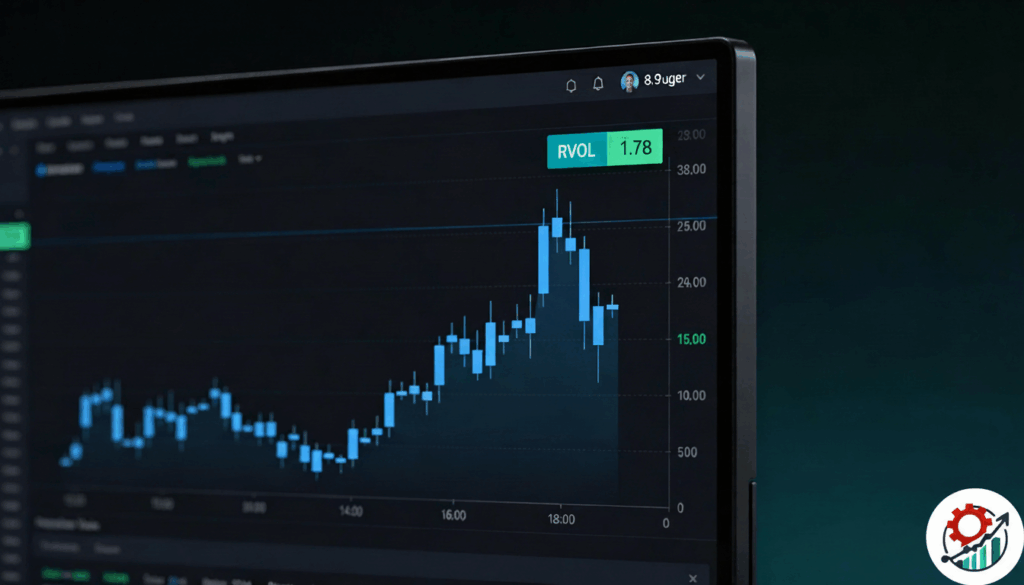 Du siehst den aktuellen RVOL-Wert dort, wo du deine Entscheidungen triffst – direkt im Preis-Chart, ohne zusätzliches Unterfenster.